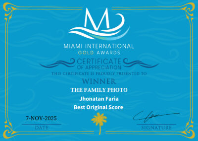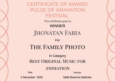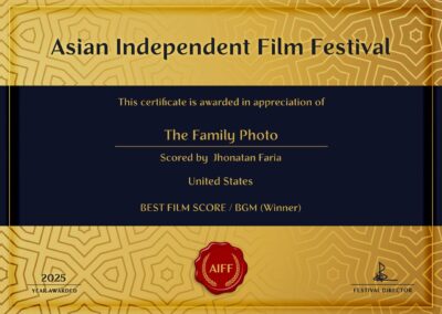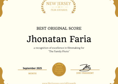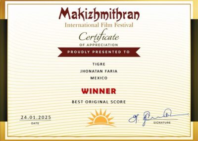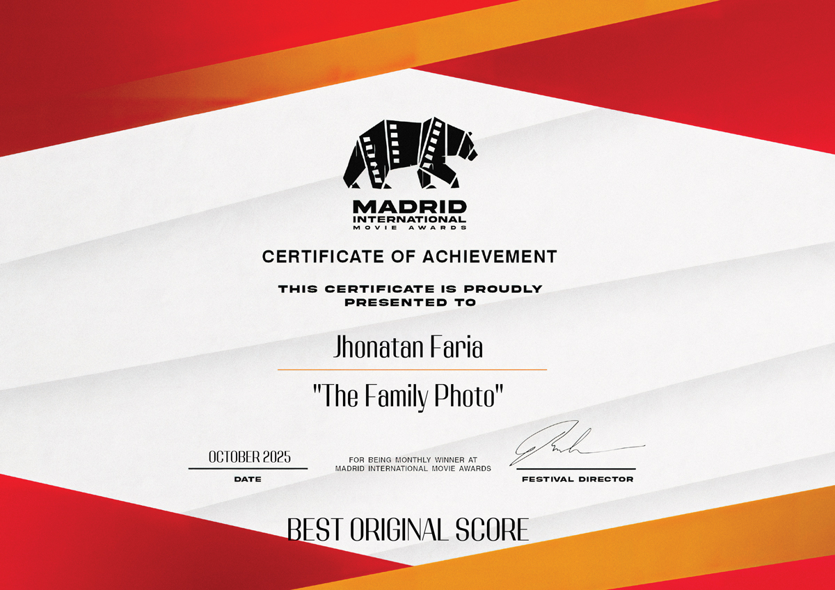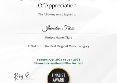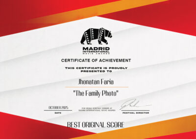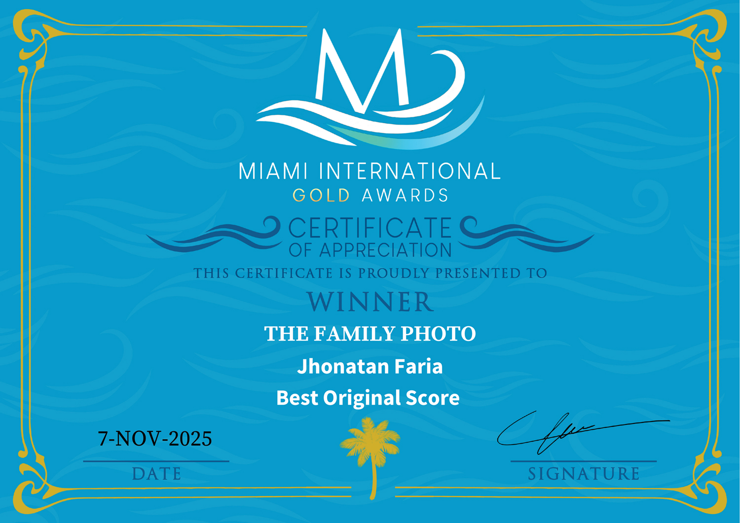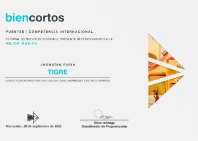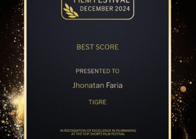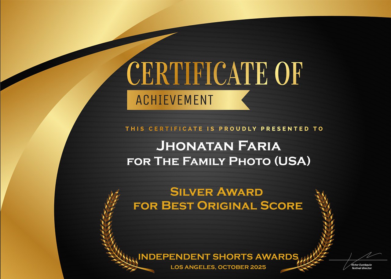 Su talento lo ha llevado a ganar prestigiosos festivales, como el premio a “Mejor Score Original” por las bandas sonoras de los cortometrajes animado TIGRE y THE FAMILY PHOTO.