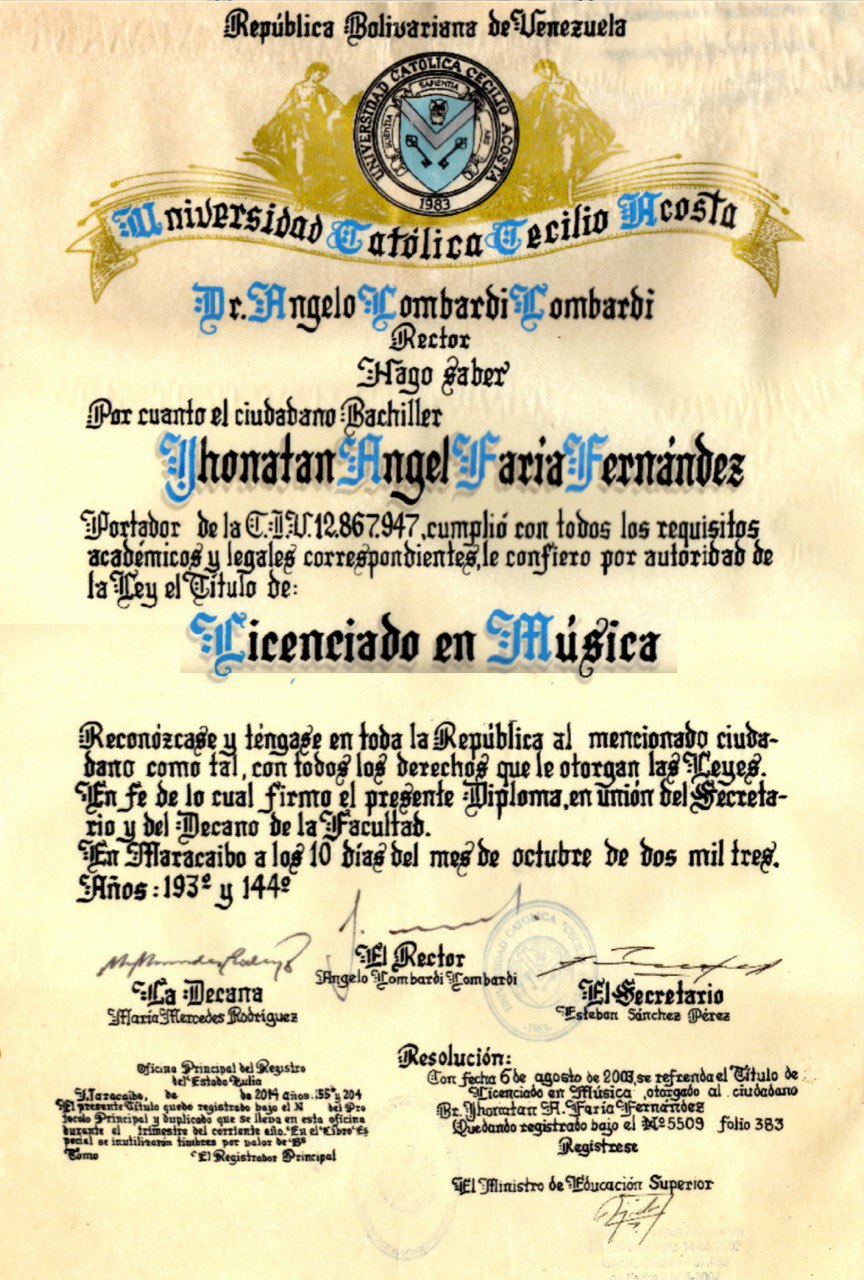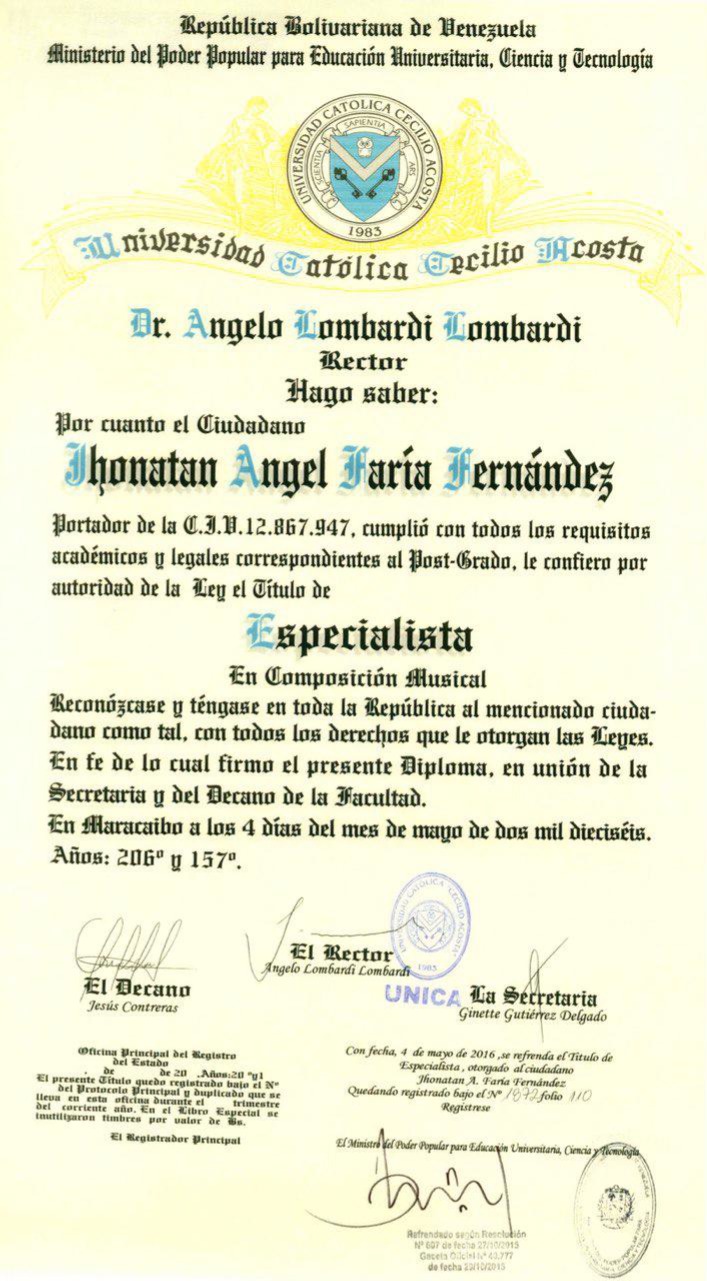 Jhonatan Ángel Faría Fernández (Maracaibo, Venezuela – 23 de octubre de 1975) es un reconocido productor musical, pianista, arreglista y compositor venezolano que egresó como alumno distinguido de la Universidad Católica Cecilio Acosta (UNICA) como Licenciado en Música y con postgrado en composición, además completó una maestría en composición de música para cine, series y publicidad en la Escuela Internacional de Audiovisuales (EARTES)